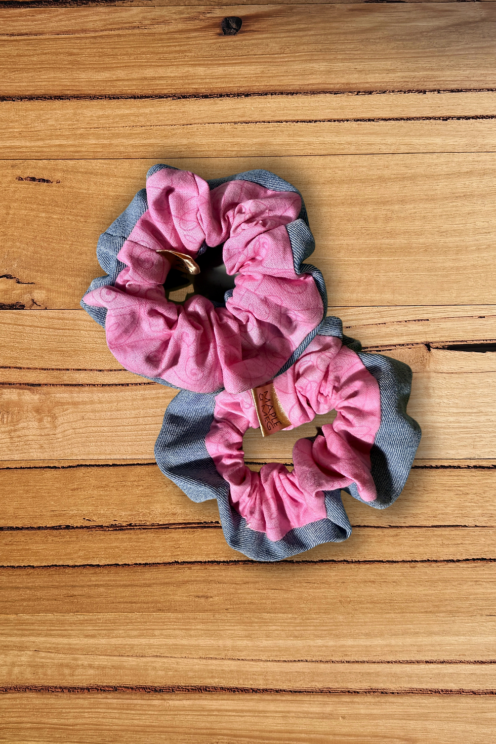 Embrace eco-friendly fashion with our handmade repurposed denim scrunchies.