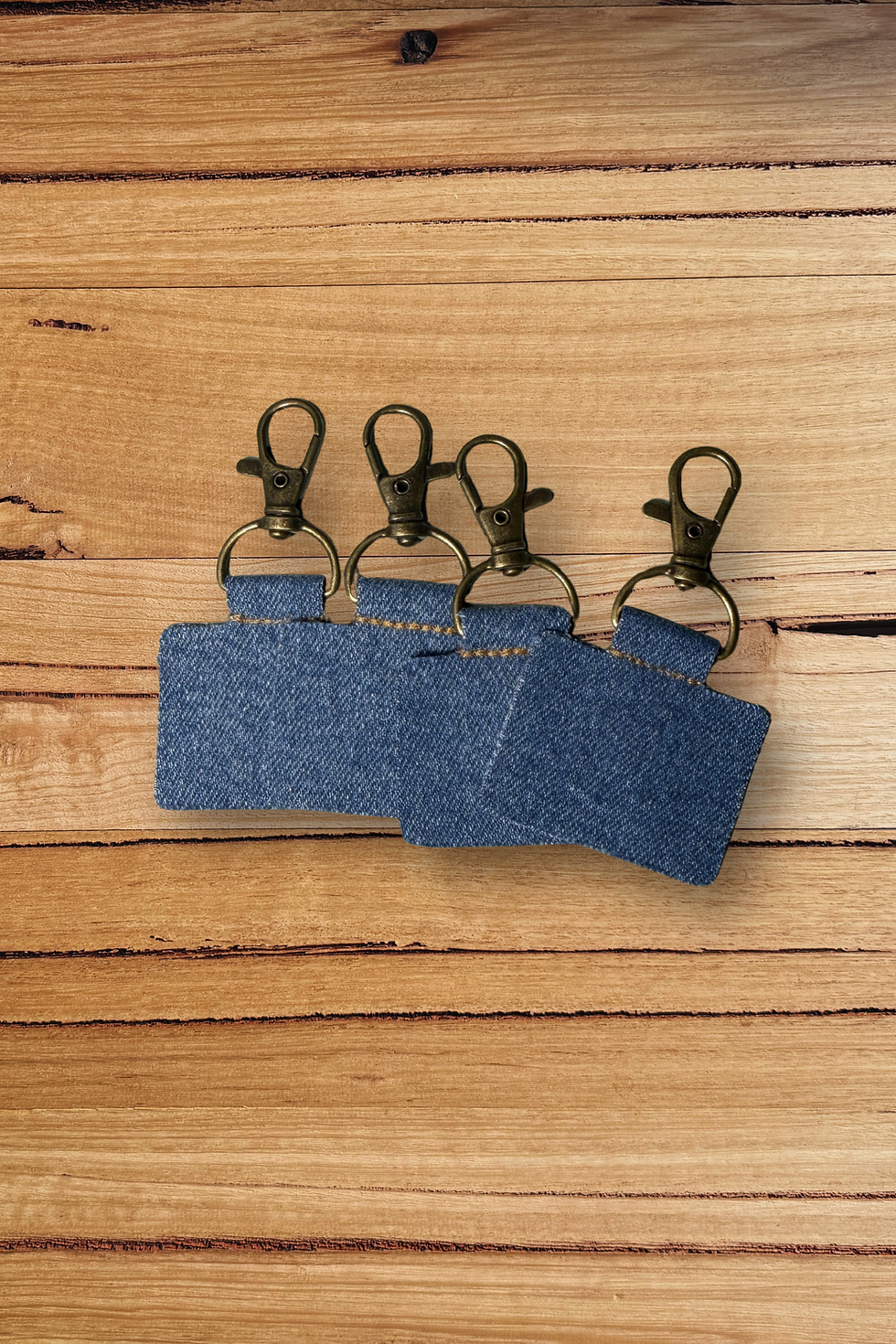 Combining style and eco-friendliness, our handmade key chains, wristlets, and hair scrunchies are crafted from repurposed denim.