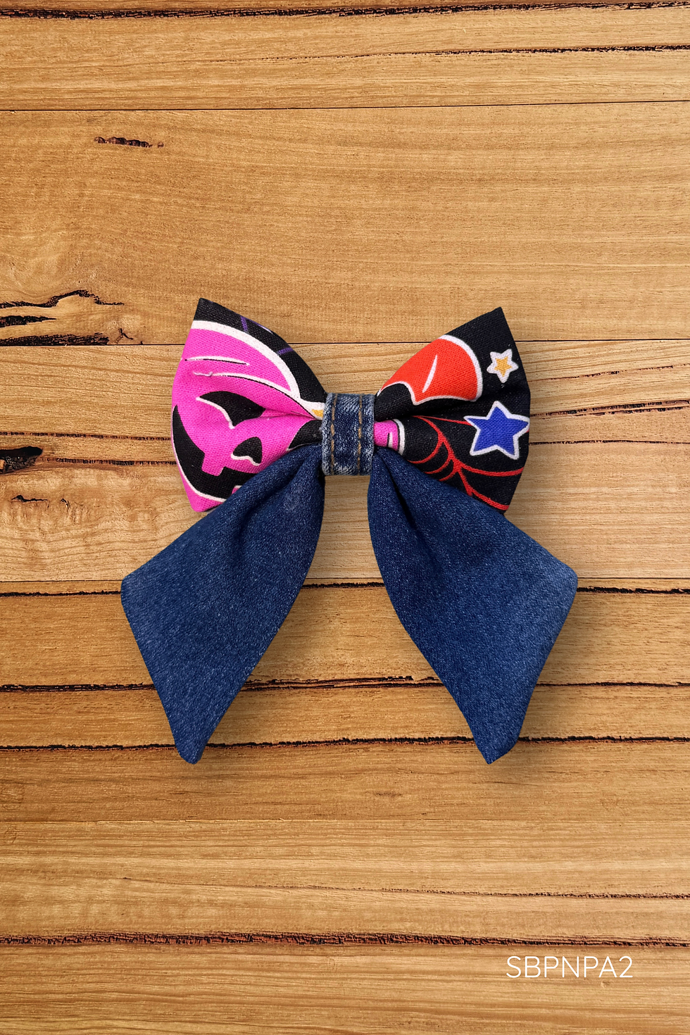 Our handmade bows are crafted from repurposed denim—lightweight, comfortable, and full of charm. Whether you choose a classic bow, a sailor bow or pattern + fabric each piece slips onto a collar with secure elastic loops for an effortless fit. Perfect for everyday wear or special occasions, it’s a stylish and sustainable way to let your pet’s personality shine.