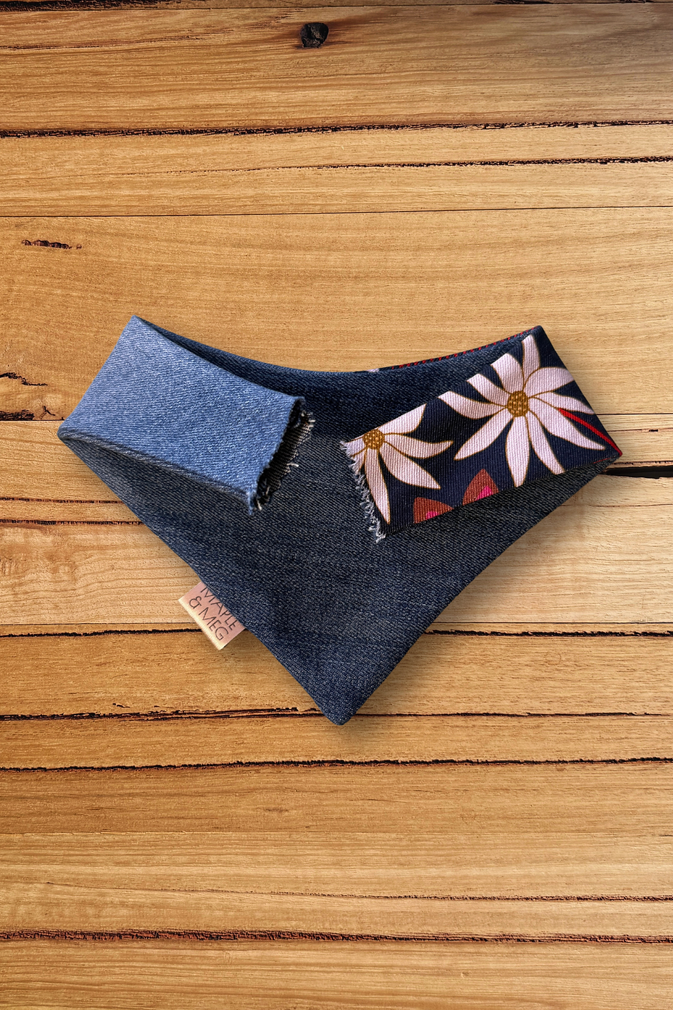 Our pet accessories bring together style, sustainability, and everyday practicality. Each piece is thoughtfully handcrafted using repurposed denim and quality fabrics, designed to add a touch of charm to your pet’s adventures. From tags and bows to our signature bandanas, every detail is made with care—because your bestie deserves something as unique as they are.